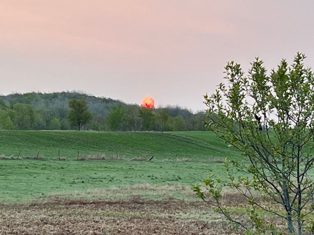 This energy from the sun travels not coincidentally at the universal speed of light. It can move unaffected through the medium of space. Things start to happen when the light rays interact with matter, such as when they travel through the Earth’s atmosphere. Here is a particularly pretty sunrise I captured in May of this year in Northern Wisconsin.