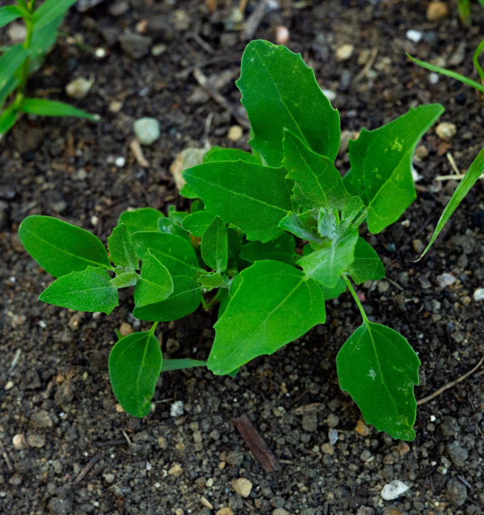 Here is lambs quarter. (Amaranthus) It will get quite big if given the opportunity. Another ‘Weed” that is edible. If you don’t use chemicals on your lawn. (recommended) Put it in you salad. Yum!