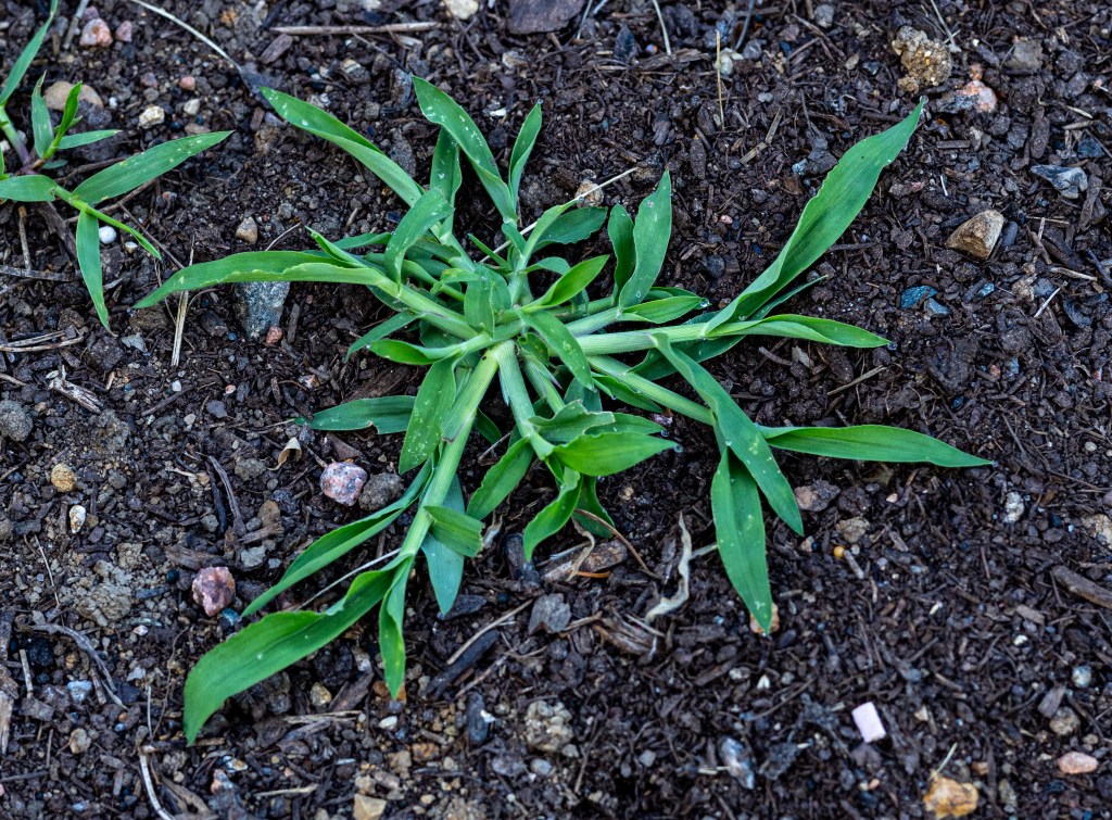 Crabgrass (Digitaria sanguinalis), Grown in Europe as a cereal crop in the 1800s. Brought to America to feed foraging livestock. Crabgrass, grr. Okay, so it is an early emerging plant. Its strategy is to start to grow in your lawn before your grass really gets going. Lawn chemical companies advertise the application in early spring as a feed and weed product. Don’t buy it… both literally and figuratively. Because it will also kill your dandelions. Which are essential early season nectar sources from our pollinators. Crabgrass likes dry hot soils. To help restrict the crabgrass, keep the lawn healthy. Water, apply slow release organic fertilizers and don’t cut the grass too short. Read Giving Dandelions Their Day in the Sun.